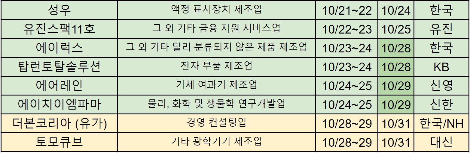 2024년 10월 공모주 청약 일정을 살펴보겠습니다.