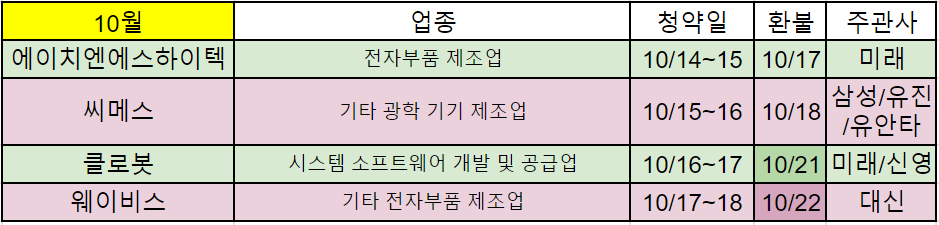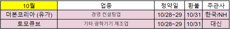 그러므로 10월 첫주 공모주 청약은 휴식~!
