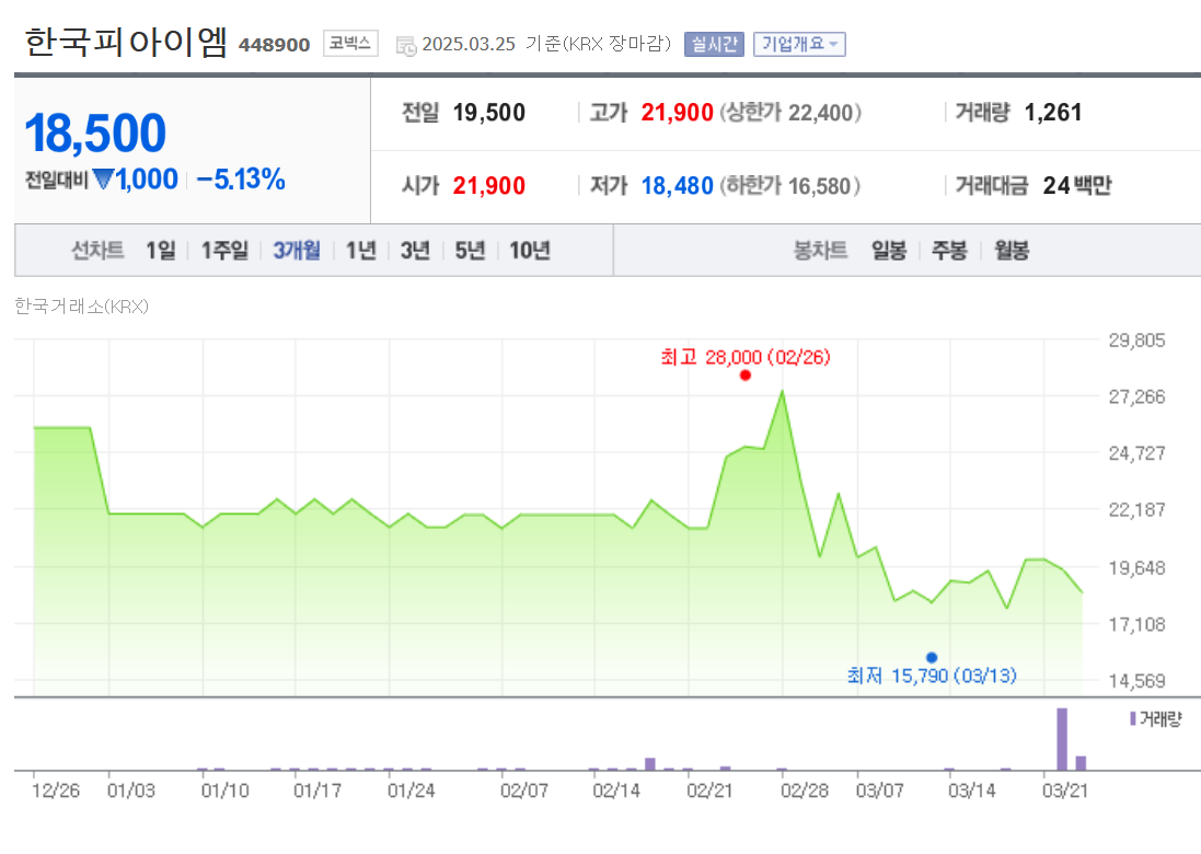 한국피아이엠은 현재 코넥스시장에서 거래되고 있고, 코스닥시장으로 이전 상장합니다.