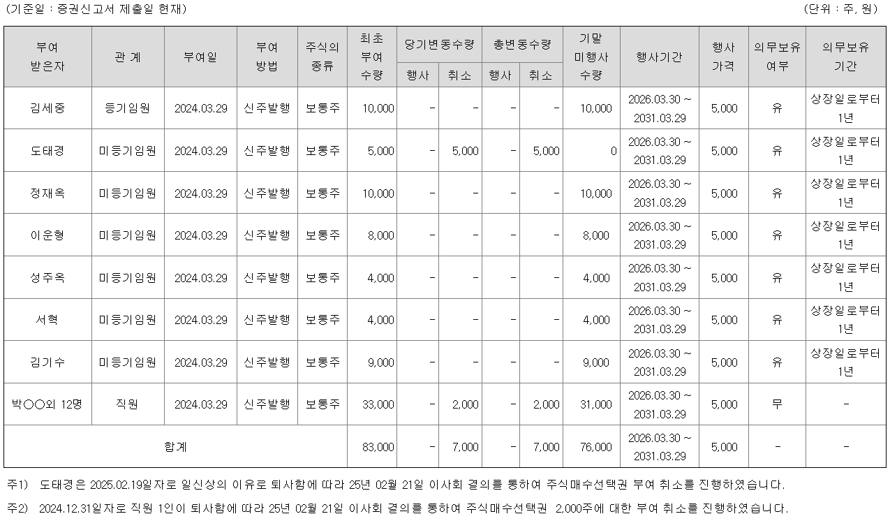 3. 스톡옵션을 발행하여 잔량이 남아 있을 것 - YES