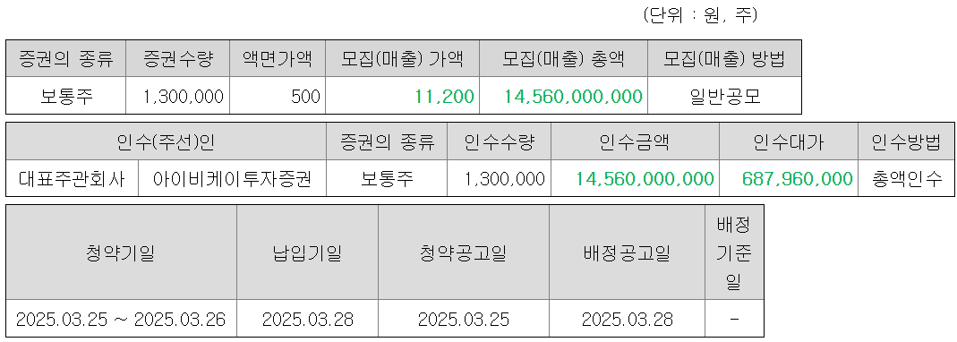 한국피아이엠 청약자격은 청약 개시일 직전 영업일까지 IBK투자증권 계좌 보유 고객.