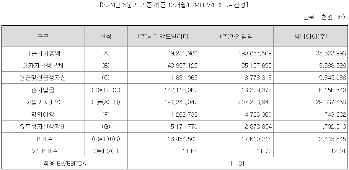 2024년 3분기 기준 최근 12개월 실적 기준 평균 EV/EBITDA 11.81배.