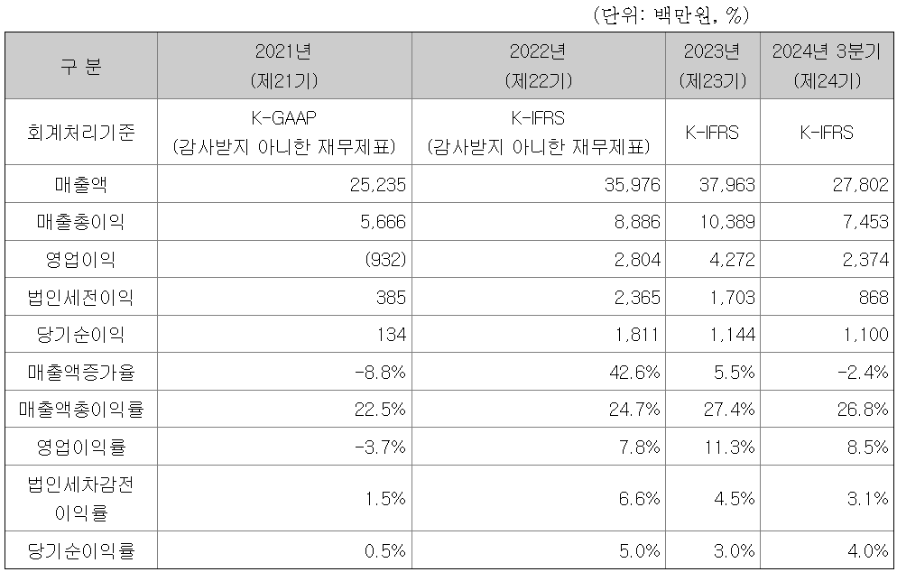 4번, 상장 전전년도인 2023년 대비 전년도인 2024년 연환산 순이익은 순성장하였습니다.