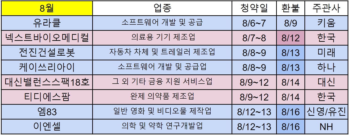 2024년 8월 공모주 청약 일정을 살펴보겠습니다.